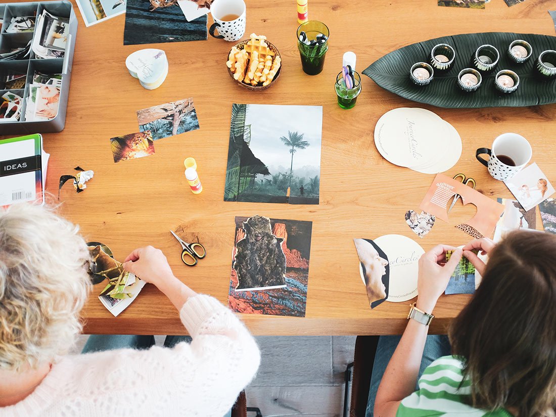 Het creatieve proces lijkt op dat van een vision board, maar de focus is fundamenteel anders. Geen vage dromen, wel richting. Geen perfecte toekomst, wel haalbare stappen.